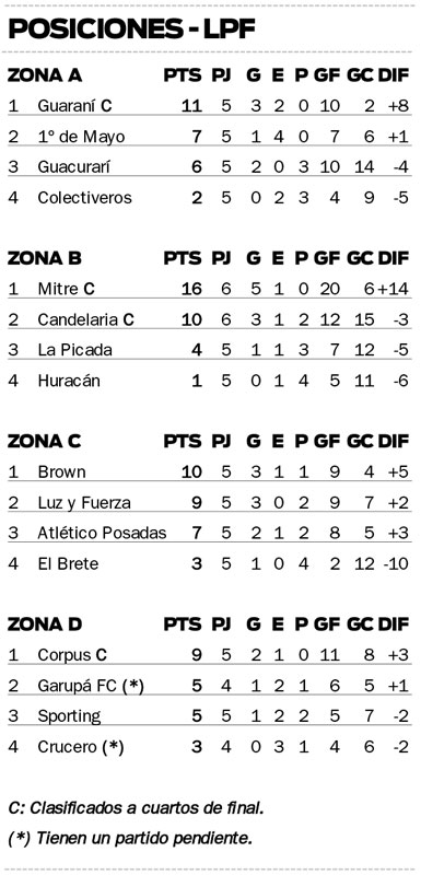 Hasta el momento, Guaraní, Mitre, Candelaria y Deportivo Corpus son los que consiguieron su pasaporte a la siguiente instancia; mientras que los otro cuatro cupos se conocerán en los próximos días.