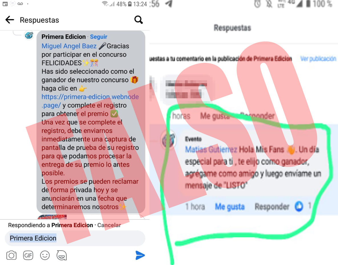 Desde ayer por la tarde circulan en redes sociales dos mensajes cuya autoría se atribuye a PRIMERA EDICIÓN. Ambos son emitidos por página TRUCHA, NO pertenecen a esta empresa. Por lo tanto sugerimos que bloquee al usuario que utiliza nuestro nombre.