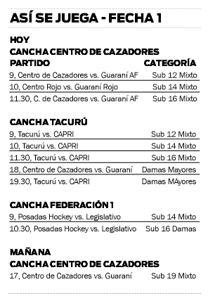 En la cancha 1 de Federación, a las 9, Posadas Hockey se enfrentará a Legislativo en Sub 14 Mixto y, desde las 10.30, en Sub 16 Damas.