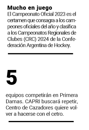 El plato fuerte de la temporada: hoy se pone en marcha el Campeonato Oficial 2023, certamen que consagra a los campeones oficiales del año y clasifica a los Campeonatos Regionales de Clubes (CRC) 2024 de la Confederación Argentina de Hockey.