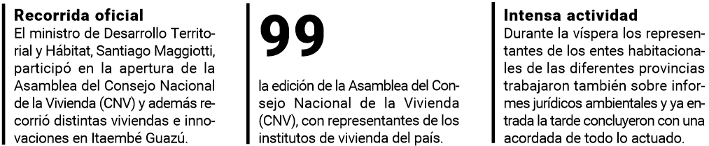 No dudó en definir al Consejo Nacional de la Vivienda, “como el espacio más federal de discusión de políticas públicas de hábitat y aquí se debate el derecho a la vivienda y también ahora un concepto más avanzado que es el derecho a la ciudad, como se ve aquí en Itaembé Guazú que no es solamente una vivienda sino que hay un equipamiento urbano que permite desarrollar la vida cotidiana sin transitar grandes distancias lo cual redunda en un menor impacto en el medio ambiente”.