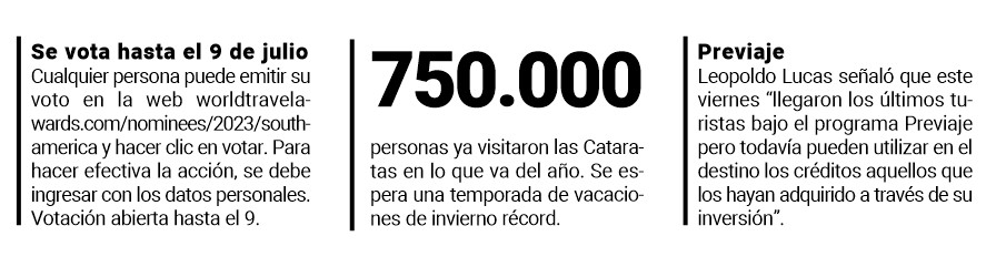 Mientras que Puerto Iguazú se prepara para el inicio de una temporada de julio que se avizora como récord, las Cataratas fueron nominadas como “Atracción Turística Líder en Sudamérica” por World Travel Awards, un equivalente de premio Óscar de la industria turística.