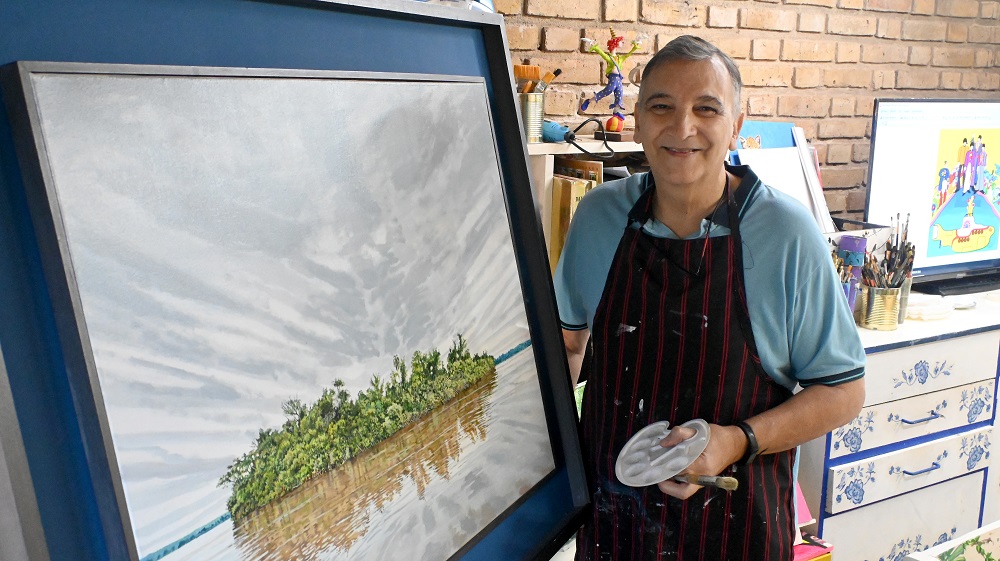 Con el arte comencé de forma espontánea a los 12 años, haciendo caricaturas, dibujos, retratos. Soy muy ecléctico con los gustos, no es que me dedico solo al paisaje. Por ejemplo, hago técnica de surrealismo, hiperrealismo, pop, tres dimensiones, caricaturas, retrato, de todo un poco, lo que me motive”.