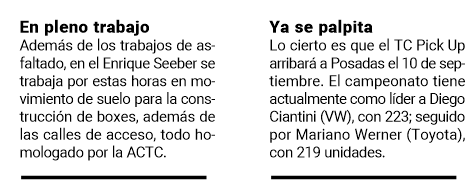 Al respecto, en las últimas horas el propio Mazzacane volvió a confirmar ante el sitio especializado Campeones que el TC Pick Up finalmente se correrá en Posadas y no en Eldorado. Será el fin de semana del 10 de septiembre, por la novena fecha de la temporada.