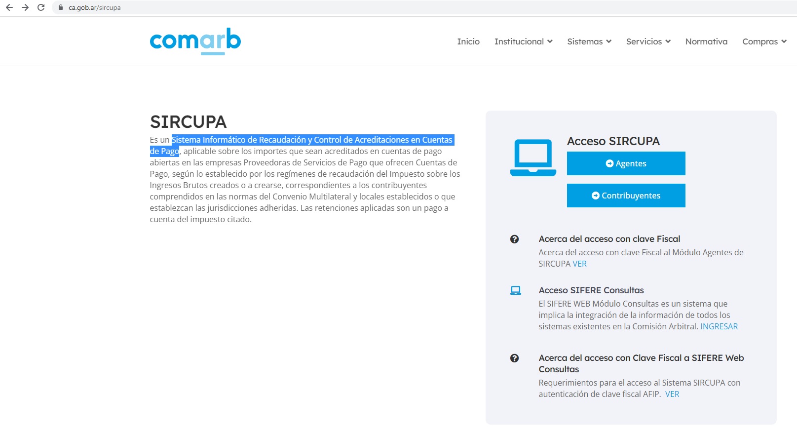 Lo primero que hay que hacer es ingresar a SIRCUPA en la web y elegir entre las categorías “contribuyente” o “agente”.