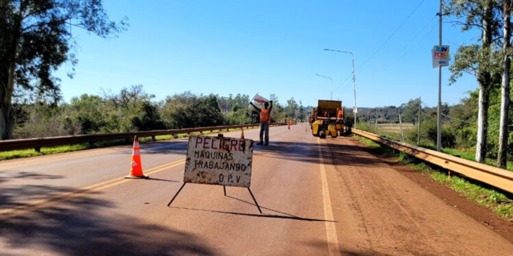 El movimiento intenso que se produce en este límite entre Misiones y Corrientes, principalmente de camiones de gran porte, obliga a llevar a cabo obras de reparación del asfalto.