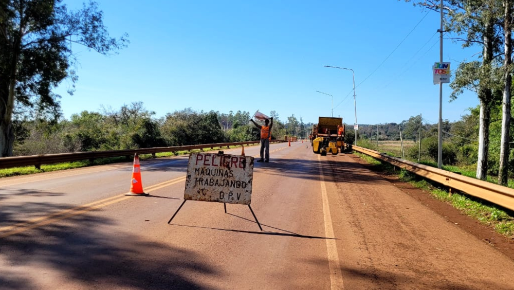 El movimiento intenso que se produce en este límite entre Misiones y Corrientes, principalmente de camiones de gran porte, obliga a llevar a cabo obras de reparación del asfalto.
