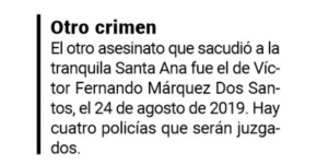 Como dato anexo del caso, alrededor de las 3.30 del 19 de marzo pasado, vecinos del barrio Martín Chico de Santa Ana llamaron a la policía porque había jóvenes realizando disturbios.