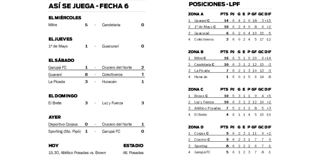 Así las cosas, con Guaraní Antonio Franco, Garupá FC, Bartolomé Mitre, Atlético Candelaria, Jorge Gibson Brown, Deportivo Corpus y Crucero del Norte clasificados, solo resta conocer al último clasificado y el mismo será revelado hoy.