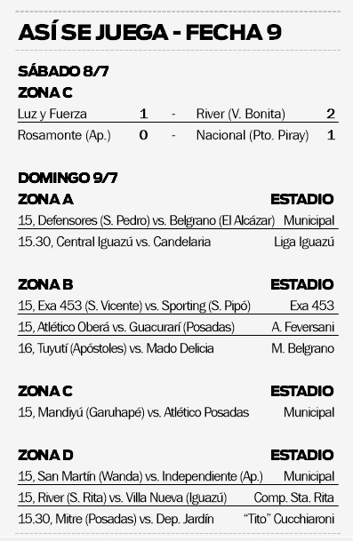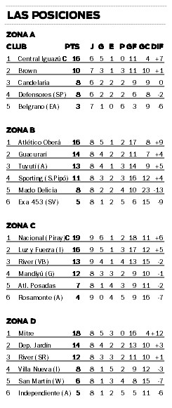 Por su parte, el que dejó pasar la oportunidad de pasar anticipadamente fue Luz y Fuerza, que no pudo aprovechar su localía en el estadio de la Liga de Iguazú al caer por 2-1 ante River de Villa Bonita.