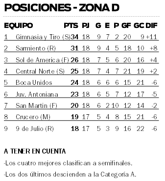 En otro de los encuentros de ayer, Sarmiento de Resistencia superó por 3-0 a Sol de América de Formosa y sigue a tres puntos del puntero Gimnasia y Tiro de Salta.