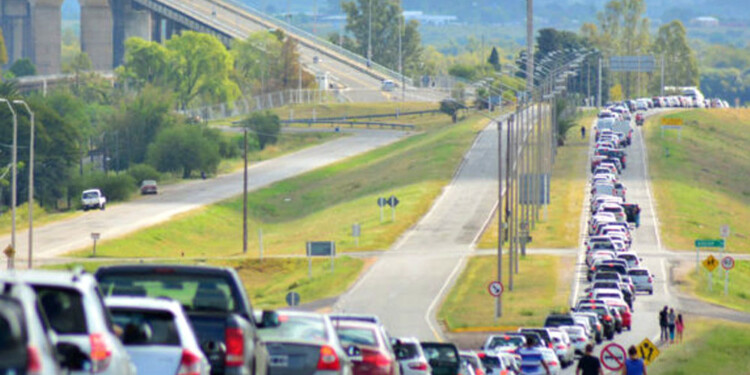 Al mediodía del sábado, en el Puente Internacional San Martín, que une la ciudad uruguaya Fray Bentos con Gualeguaychú, había una fila de 4,5 kilómetros de espera. En Paysandú –para cruzar a Colón–, había una cola de 1,5 kilómetros y en Salto (límite con Concordia) no había espera.