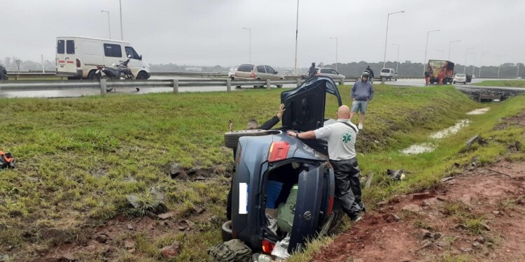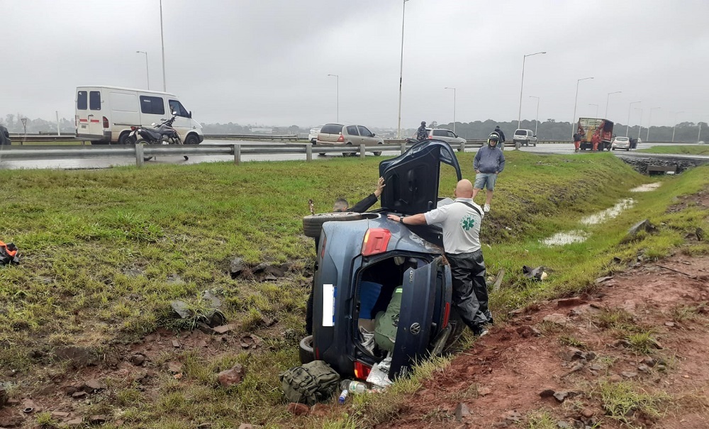 Allí, un Volkswagen Gol Trend que circulaba en sentido Garupá-Posadas se salió de la calzada por causas que son materia de investigación y terminó volcado en la banquina.