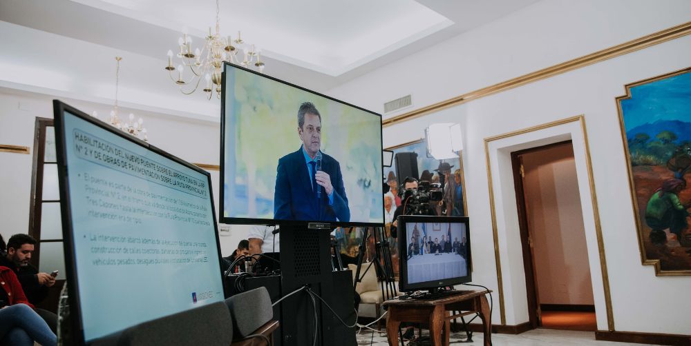 La reunión vía satélite desde el Parque Yrigoyen, en el municipio de San Martín, Buenos Aires, se trató de una presentación donde se inauguró simultáneamente un total de cinco obras, incluyendo las del municipio del Sur misionero.