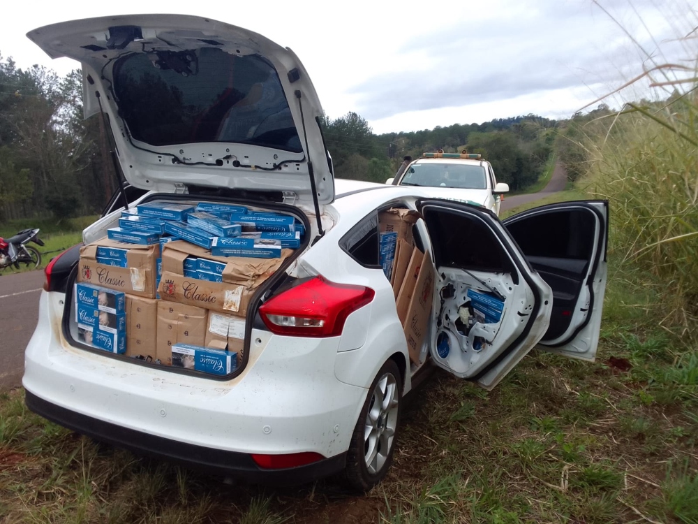 Ocurrió en la localidad de Pozo Azul. El conductor dejó abandonado el auto que estaba repleto de cajas de cigarrillos y tenía pedido de secuestro.