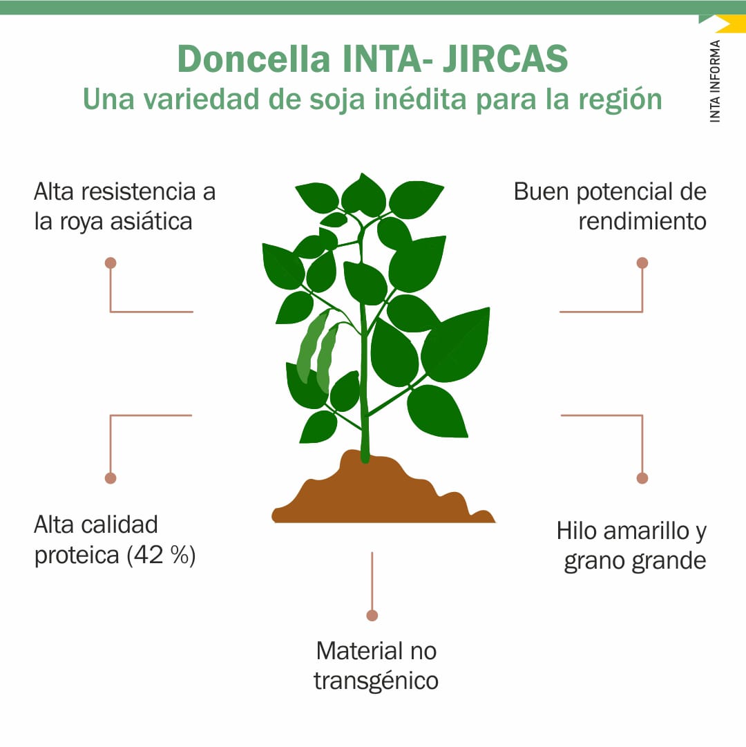 La variedad experimental desarrollada por JIRCAS fue transferida al INTA, donde se le agregó una variedad de alta calidad nutricional y características agronómicas diferenciadas. Tras realizar ensayos en diferentes localidades del país, como Cerro Azul (Misiones), Paraná (Entre Ríos) y Marcos Juárez (Córdoba), se comprobó que la nueva variedad, llamada Doncella, mostraba excelentes resultados, incluso superando las expectativas en algunas regiones.