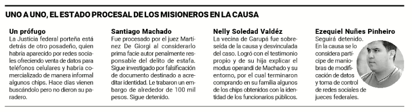 Pero el testimonio de Nelly Soledad Valdéz (ahora completamente sobreseída en la causa) como el de su hija habrían permitido avanzar en el modus operandi en la venta de tarjetas SIM con crédito de datos, algunos de ellos comprados por las dos mujeres misioneras.