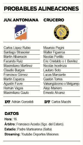 El conjunto misionero enfrentará a Juventud Antoniana de Salta, en el estadio Padre Martearena. El encuentro se jugará a partir de las 16 y contará el arbitraje del santiagueño Francisco Acosta.