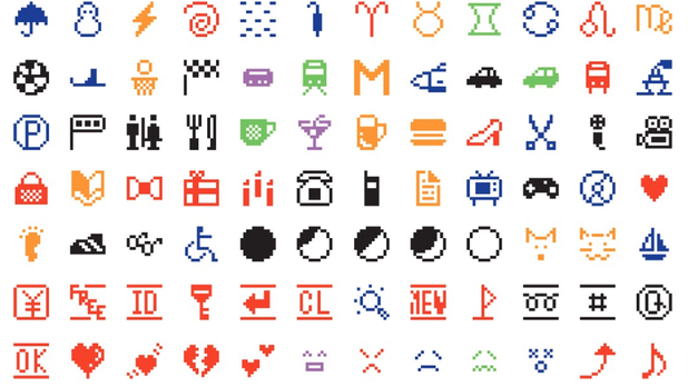 El primer emoji fue creado en 1999 y tiene su origen en Japón. Su diseño estuvo a cargo de Shigetaka Kurita para que fueran utilizados por la plataforma de internet móvil NTT DoCoMo. Kurita se inspiró en los íconos que usaban los reportes del clima para darle vida a un total de 180 emojis que representaban las expresiones más comunes de los japoneses. Actualmente, el set creado por Kurita es propiedad del Museo de Arte Moderno de Nueva York y así se ve: