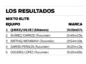 La dupla completó en primer lugar el duro trazado de 50 kilómetros de recorrido en 2h39m07s, seguidos por los tucumanos Suárez y Carrizo (2h45m23s) y la pareja Batting/Monmany (2h54m19s).