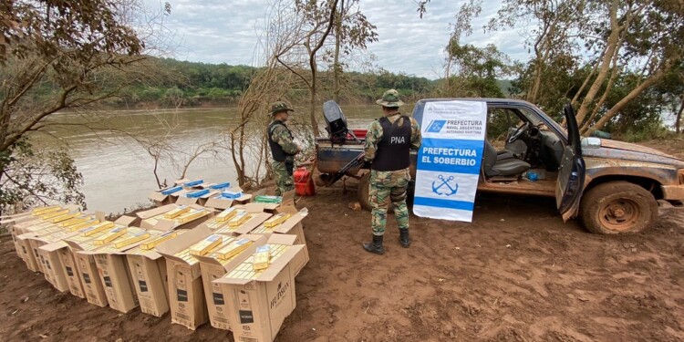 Efectivos de la Prefectura Naval Argentina secuestraron cerca de 12.000 paquetes de cigarrillos que pretendían ser exportados ilegalmente por la costa del río Uruguay en jurisdicción de El Soberbio.