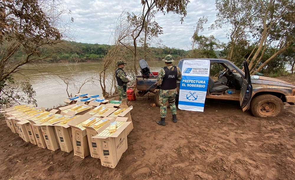 Efectivos de la Prefectura Naval Argentina secuestraron cerca de 12.000 paquetes de cigarrillos que pretendían ser exportados ilegalmente por la costa del río Uruguay en jurisdicción de El Soberbio.