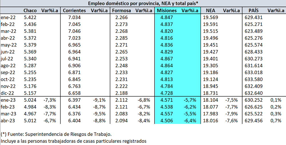 Misiones no es ajena a esta realidad y sufre gradualmente una disminución en el registro formal de empleos domésticos.