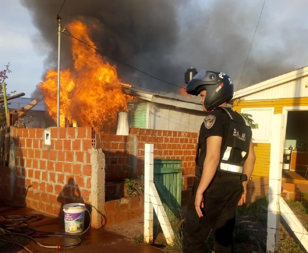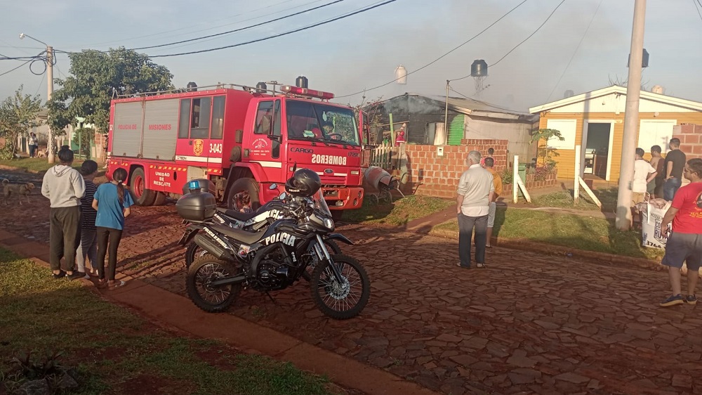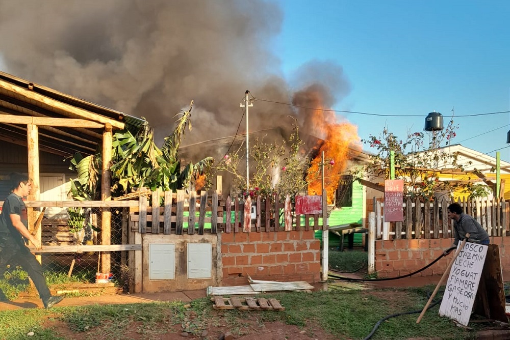 Durante las primeras horas de este domingo, una de las casas de madera del barrio 508 Viviendas de Posadas quedó reducida a cenizas a causa de un incendio que dejó con lo puesto a una familia integrada por un hombre de 53 años, su pareja de 24 y tres hijos de 7, 6 y un año.