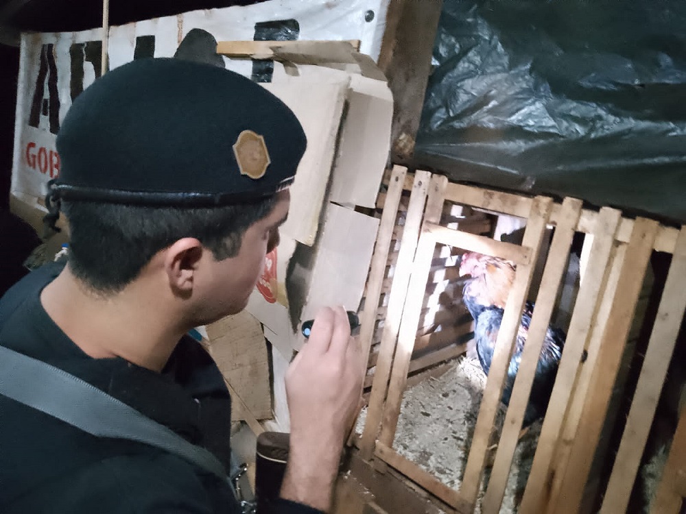 Los gallos incautados fueron atendidos por el veterinario policial y puestos bajo resguardo en una reserva.