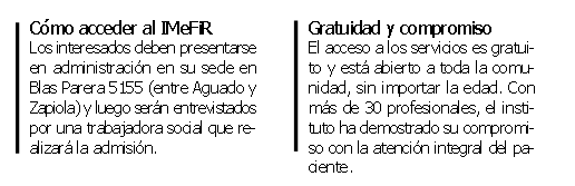 En el Instituto de Medicina Física y Rehabilitación (IMeFiR) confirmó que realiza más de 500 atenciones mensuales a más de 50 pacientes que asisten para recibir prestaciones y rehabilitación física, nutricional, clínica, kinesiológica, psicológica, y psicopedagógica.