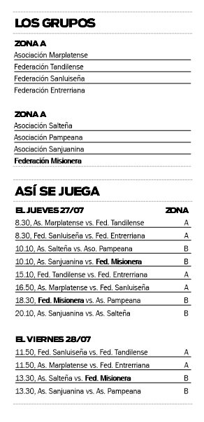 Misiones integrará la Zona B ante las locales de la Asociación Salteña, la Asociación Pampeana y la Sanjuanina. La Zona A, por su lado, estará integrada por la Asociación Marplatense, la Federación Tandilense, la Sanluiseña y la Entrerriana.