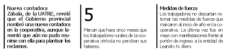 El conflicto, que viene desde el año pasado, parecía haber llegado a un punto de acuerdo. Es que, tal como lo publicó en su momento PRIMERA EDICIÓN, en mayo la comisión directiva de la citrícola se comprometió a comprar frutas para que los trabajadores pudieran continuar con sus tareas. Con las ventas venideras, se comprometían a ponerse al día con las deudas salariales.