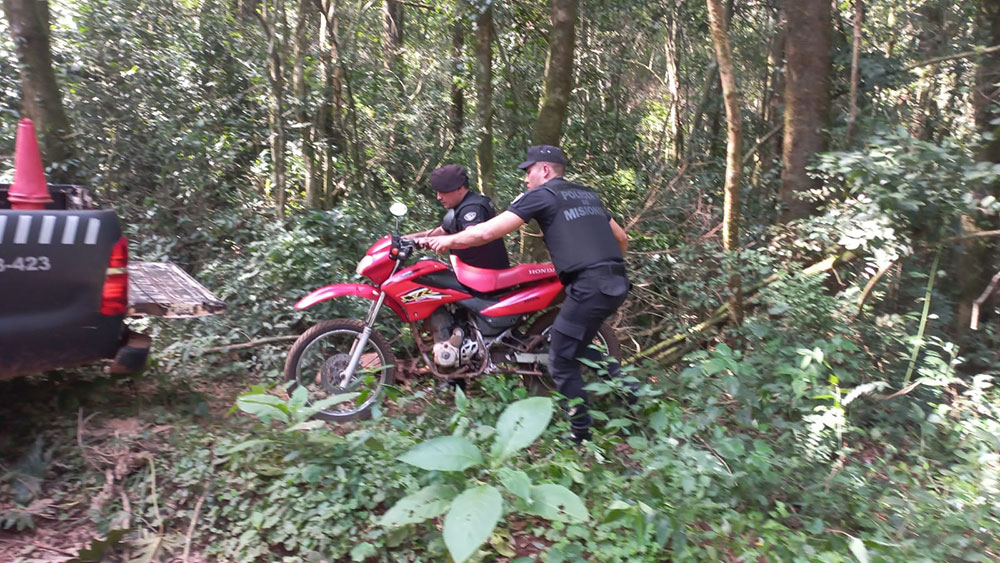 Ante el claro intento de fuga, los agentes emprendieron un seguimiento controlado. Cuando los hombres se vieron acorralados, decidieron descender de la moto y ocultarse entre las malezas del monte.