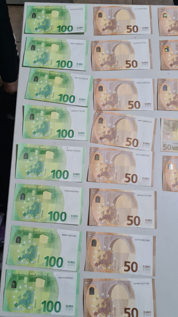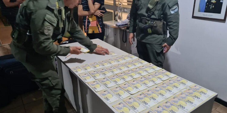 Seguidamente, y ante la presencia de testigos, los agentes continuaron el procedimiento y hallaron tres fajos de billetes. Dos se encontraban ocultos en su ropa interior, los cuales contenían 15.530 euros y 205 dólares. El tercero estaba escondido en el bolsillo de su campera, el cual contenía 201.400 pesos argentinos.