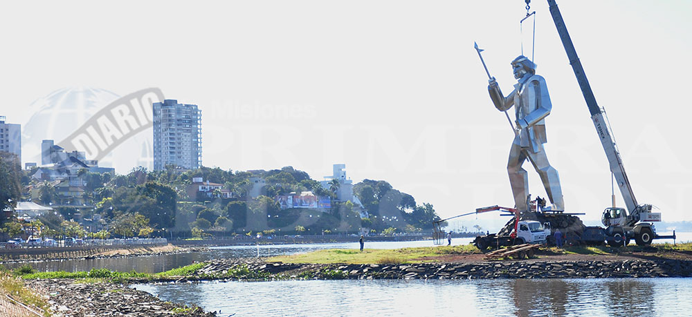 Hace diez años, el jueves 25 de julio de 2013, y tras un intenso y espectacular operativo, la escultura de acero del prócer misionero Andrés Guacurarí quedó emplazada en su actual ubicación en la costanera de Posadas, a media cuadra aproximadamente de donde estaba el antiguo Puerto.