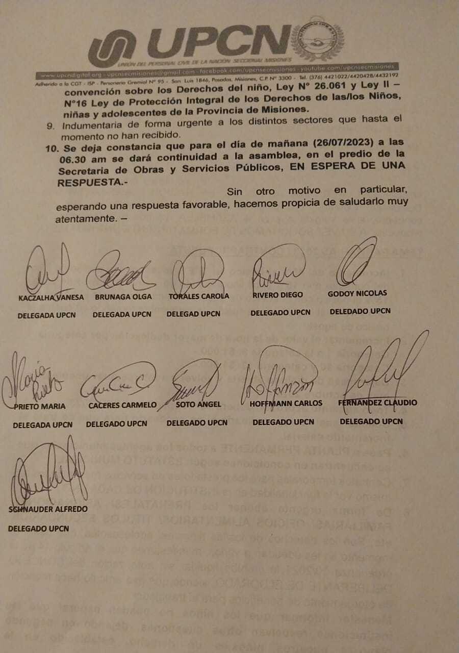 Por este mismo motivo, pidieron a la presidenta del Concejo Deliberante de la ciudad, Lorena Cardozo, a través de una nota, el pronto tratamiento del petitorio ingresado el último mayo. De no obtener una pronta respuesta a sus pedidos, avisaron que marcharán hacia el recinto deliberativo, según acordaron de manera unánime en la asamblea.