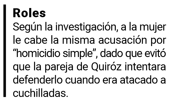 Cuando su pareja se abalanzó sobre Quiróz, ella atajó a la novia de la víctima para que no se interpusiera. Con las pruebas recabadas durante la instrucción se estableció que le cabía la misma responsabilidad por el delito de “homicidio” aunque no fuera ella la que lo había atacado. Más allá de ello, resta que esto sea definido en el juicio oral y público de la semana que viene.