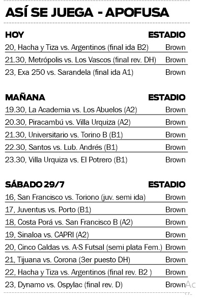 Por su parte, a las 20, Hacha y Tiza y Argentinos se verán las caras por la final revancha de la categoría B2. La revancha, en tanto se jugará, a las 22.