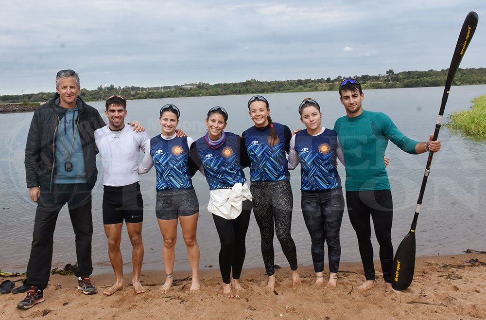 Todos los días, en el club Capri de Posadas, los palistas del seleccionado nacional realizan hasta tres turnos de entrenamientos. Gimnasia, agua y ablande, es la rutina habitual de Manuel Orero (escobar), Valentín Rossi (San Pedro), Candelaria Sequeira (Luján), Rebeca D’estefano (San Pedro), Lucía Dalto (La Plata) y Paulina Contini (Santa Fe) en la ciudad posadeña.