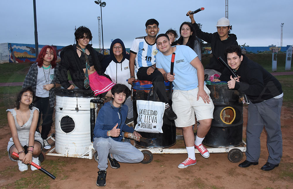 Pablo Vasciuka y César Acuña se encontraban en su zona de ensayo, alrededor del mural hecho con lápiz en el cuarto tramo de la Costanera posadeña. “El año pasado por algunos problemas externos y familiares se nos complicó, pero este año pudimos salir a flote y acá estamos. De a poco los chicos se van acoplando y cumplen con los prácticas, somos 30 integrantes aproximadamente en banda”, contó Pablo.