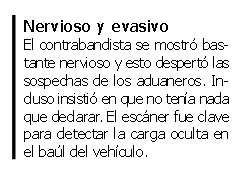 Todo se inició cuando el conductor de un Ford Ka gris oscuro se sometió a la inspección de rutina en la cabecera argentina del citado viaducto. Al realizarle preguntas habituales, los agentes aduaneros detectaron un nerviosismo en su conducta a la hora de dar respuestas.