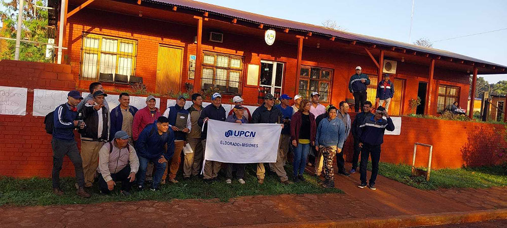 Un grupo de referentes sindicales de UPCN de Eldorado se movilizó hasta la Municipalidad de Mado para participar y apoyar el reclamo de los municipales locales, quienes iniciaron un paro de 72 horas en reclamo de una mejor oferta salarial por parte del intendente, Roberto Wern.