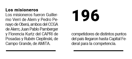 La cita fue en las instalaciones del Parque Olímpico de la Juventud y estuvo organizada por la Federación de Tiro con Arco de Buenos Aires (FETABA). Los representantes misioneros fueron Guillermo Verri de Alem y Pedro Penayo de Oberá, ambos del Centro Cultural Germano Argentino (CCGA) de Alem; Juan Pablo Pamberger y Florencia Kurtz del CAPRI de Posadas y Rubén Cieplinski, de Campo Grande, representante de AMiTA.