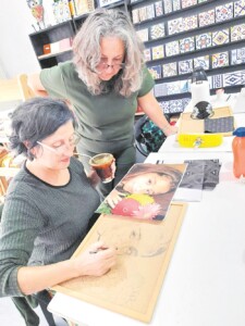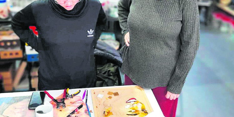 En Posadas dictó el taller de retrato de mosaico que se realiza partiendo de una fotografía. “Cada estudiante elige cuál será su modelo, me envían las fotos impresas y cada uno hace su proyecto propio”, explica la artista quien reconoció que “varios alumnos se atrevieron a innovar con colores saliéndose de los originales de la foto que eligieron. Incluso hubo quien jugó ‘todo en azules’, aunque la mayoría fue a la forma más segura, naturalista…”.