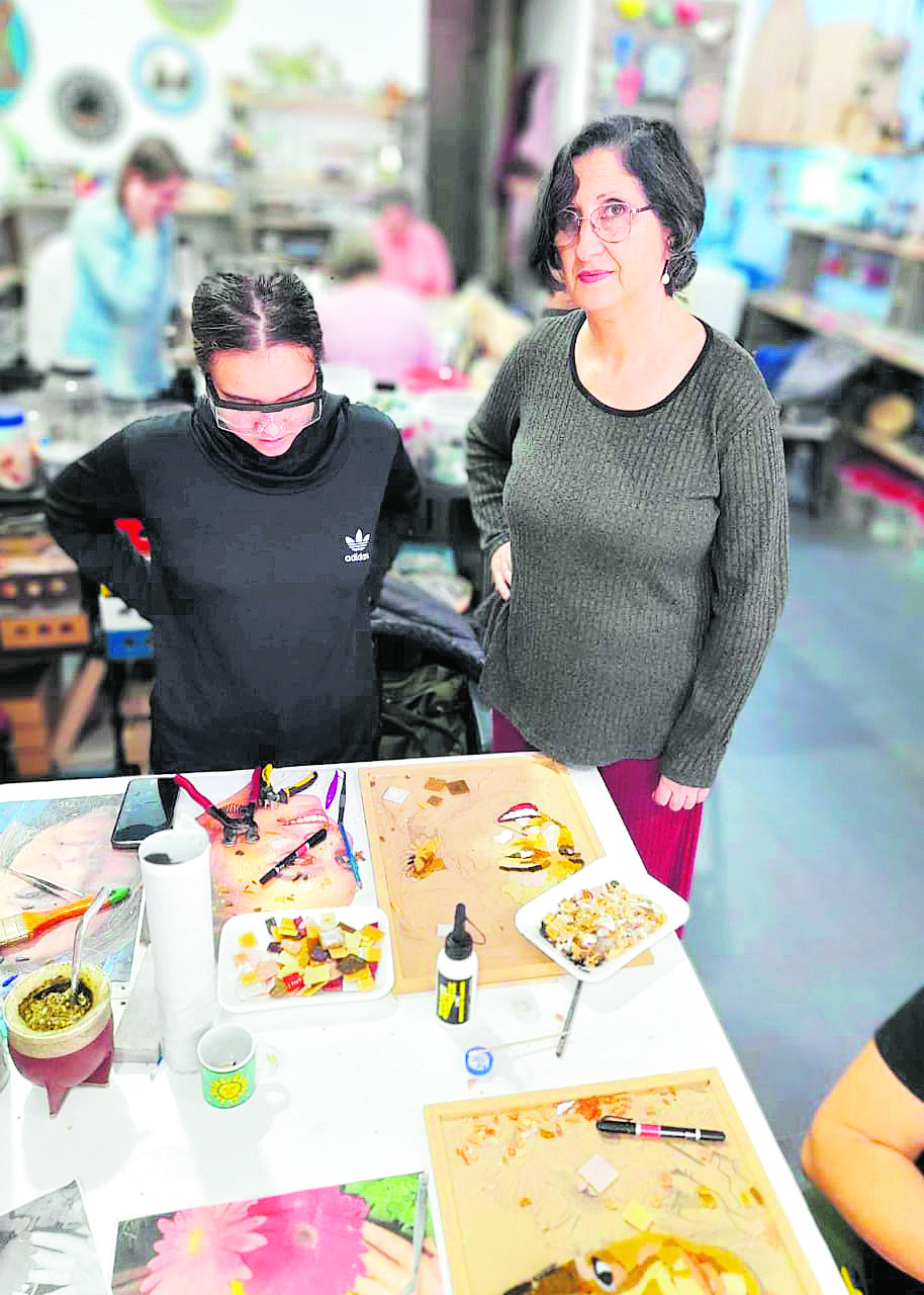 La reconocida artista cordobesa, Adriana Mujarrege estuvo en Posadas dictando un taller de retrato de mosaico.