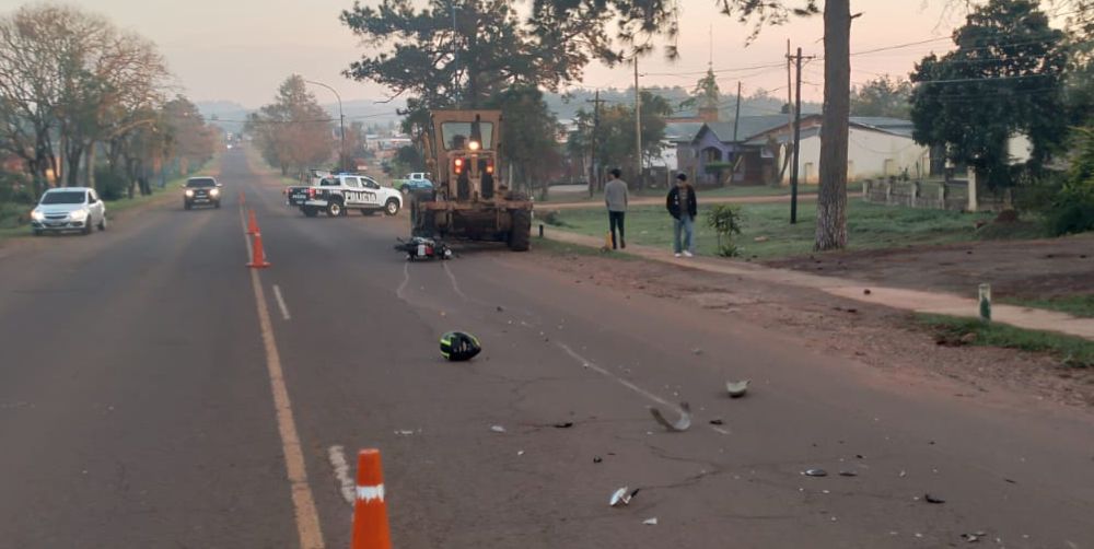 En la mañana de este jueves, en la localidad de San Javier el conductor de una motocicleta chocó contra una motoniveladora. La víctima sufrió múltiples lesiones que requirieron atención médica inmediata.