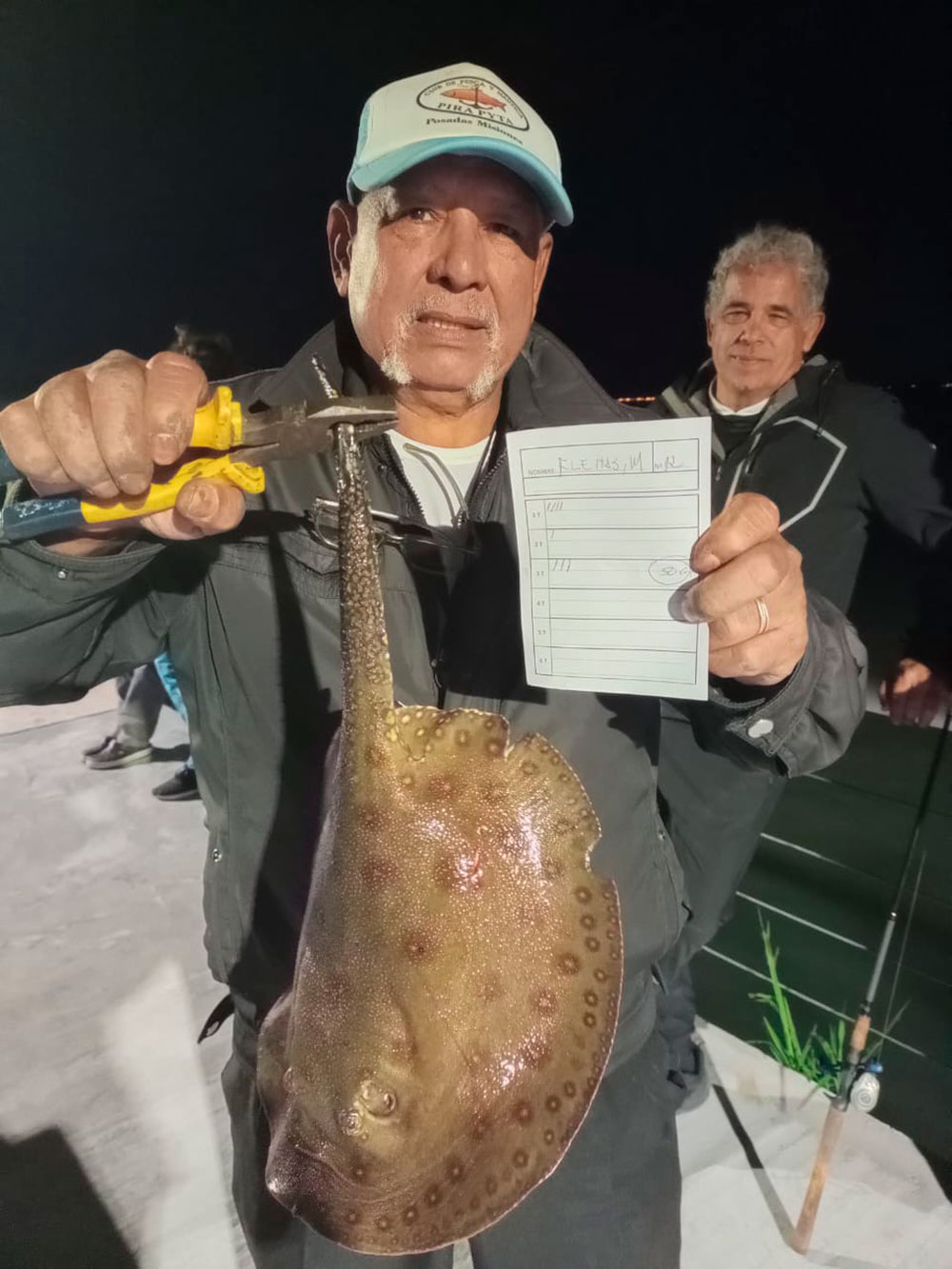 Ya en horas de la noche empezaron a picar algunas rayas y el que acertó un pleno fue el inoxidable Marcos Fleitas al clavar un ejemplar de 50 centímetros que se convertiría dos horas después en la pieza mayor del torneo.