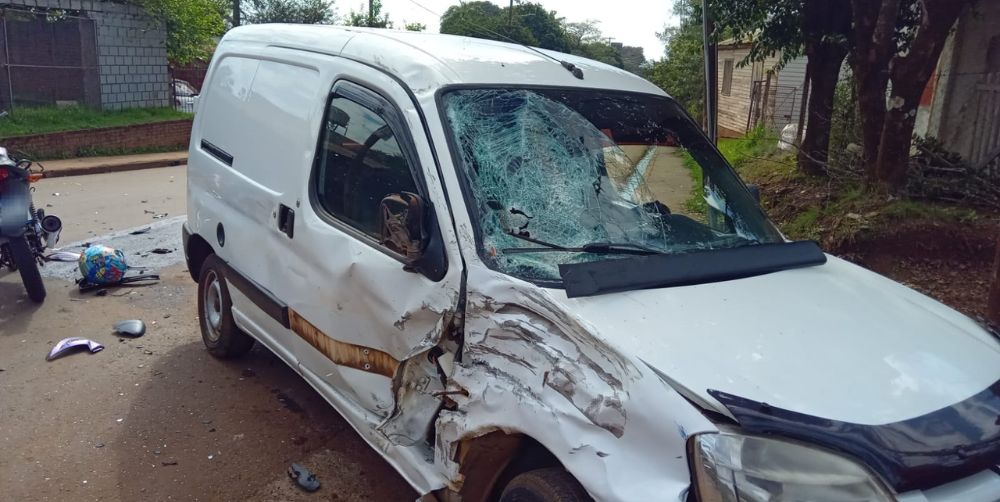 Un motociclista chocó contra un utilitario y resultó gravemente herido. El siniestro vial tuvo lugar hoy alrededor de las 14 horas, en la intersección de la Avenida Roth con las calles Mburucuyá y Guembé en la localidad de Garupá.