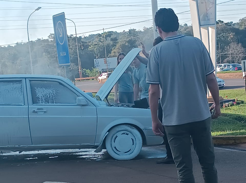 Dos dotaciones de Bomberos Voluntarios de la ciudad de Puerto Iguazú debieron actuar con urgencia esta tarde, luego de que un vehículo se incendiara dentro de una estación de servicio ubicada en la transitada Ruta 12 de dicha localidad.