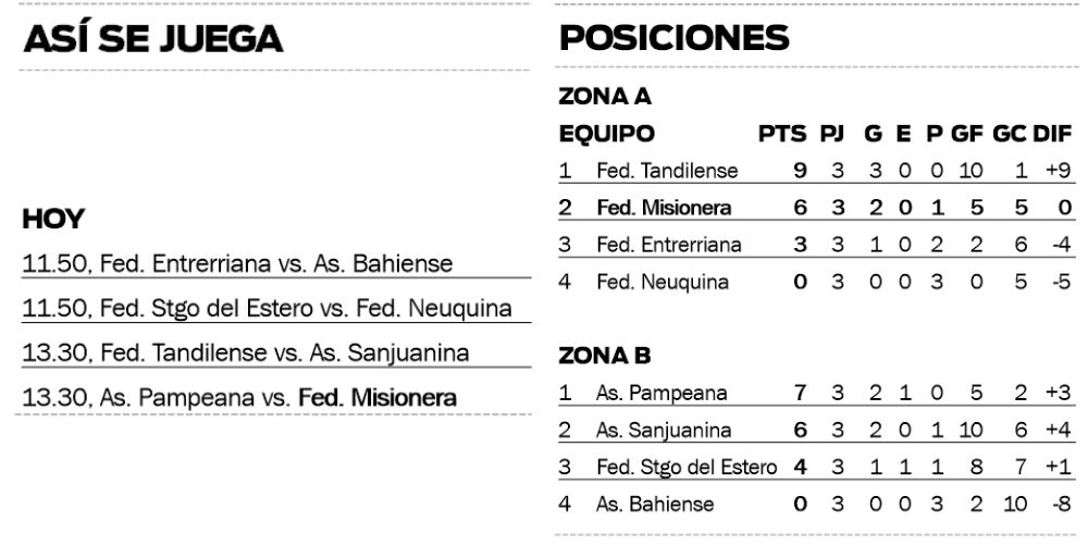 De todas maneras, Misiones se recuperó para el duelo de la tarde, ante la Federación Neuquina. Otra vez Josefina Sanabria puso el 1-0 y las misioneras se quedaron con la victoria por la mínima y de esta manera sumaron los primeros tres puntos en la competencia.